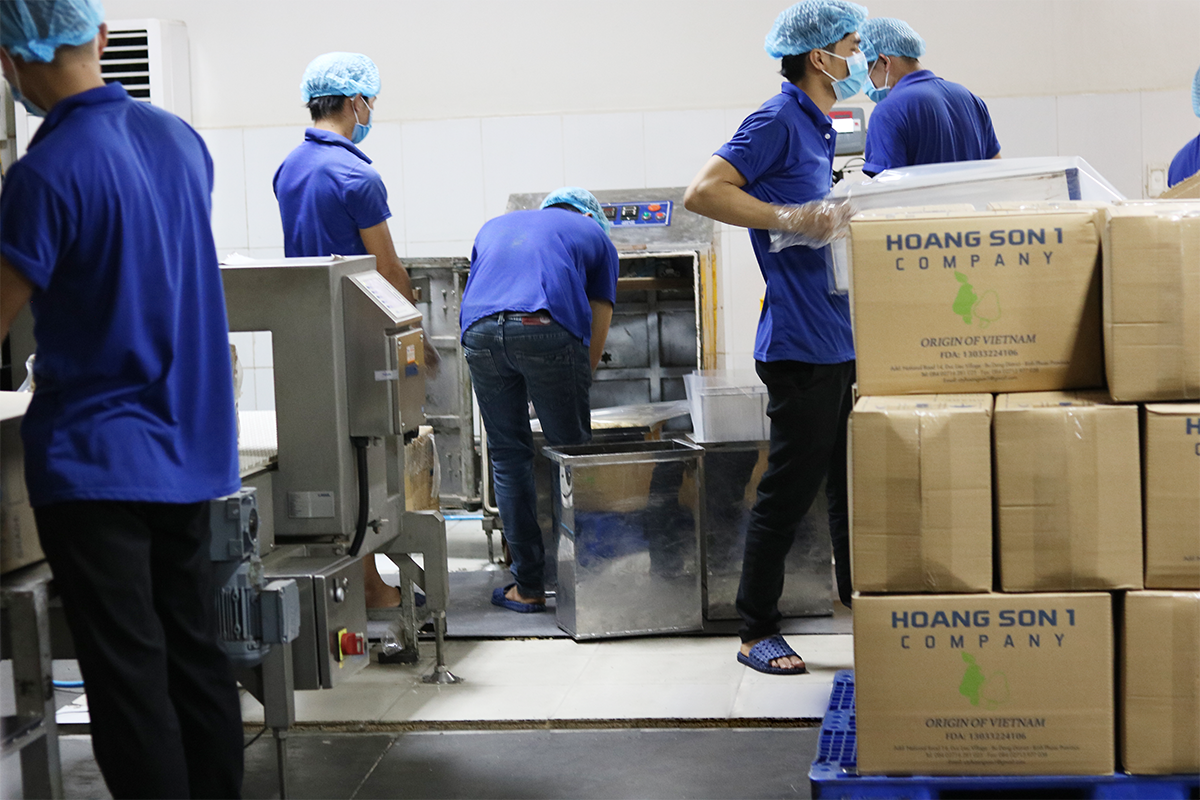 Máy dò kim loại hạt điều là một trong các thiết bị nằm trong khâu kiểm tra trên dây chuyền sản xuất xuất khẩu.